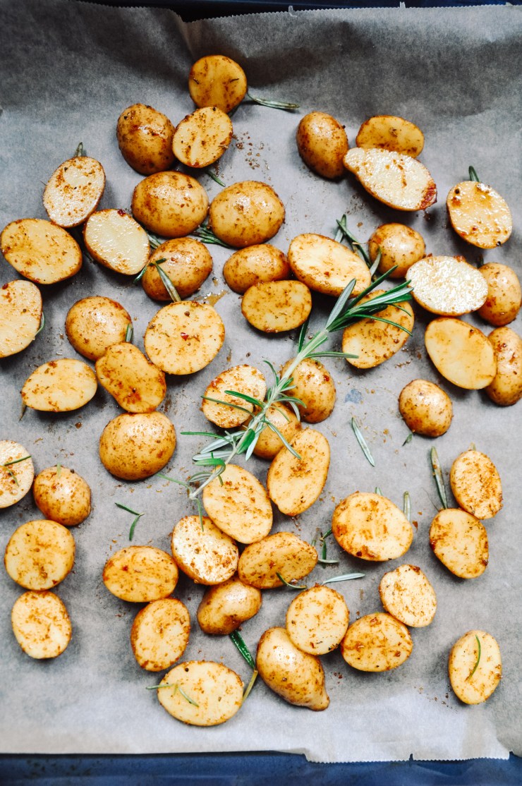For me, side dishes are as important as the main dish, I’d even say they’re the real star of the dish. Oven roasted potatoes are a go-to for me because they go well with so many different meals. This is not quite a recipe but rather a compilation of tips on how to make the perfect oven roasted potatoes. You obviously need potatoes to do it, I like to buy baby-potatoes for this.