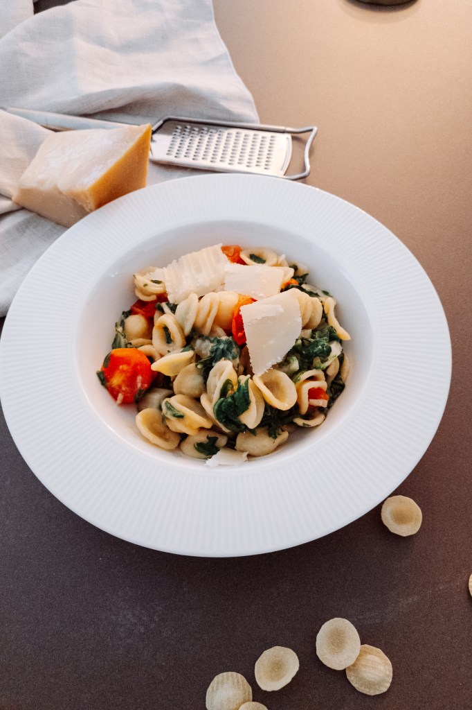 When I think of Orechiette, I think of them with this sauce. Cima di Rapa is a healthy and delicious kale-like vegetable and it’s not too heavy in flavor but just enough to give your meal the green kick it needs. This sauce would also go well with some sort of sausage in it but I decided to keep it vegetarian.