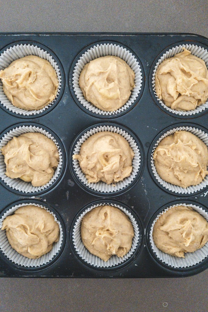 Preheat your oven to 180 degrees celsius an line a 12-cup cupcake pan with paper liners.