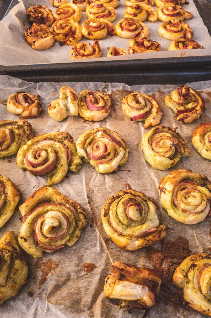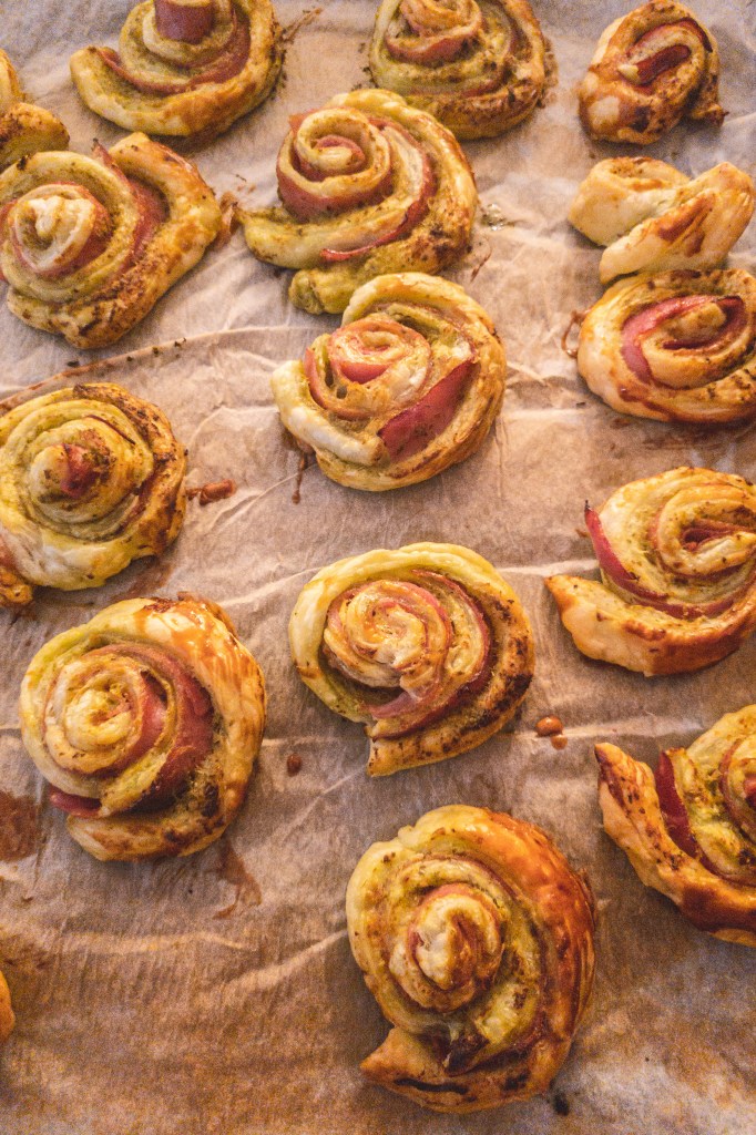 So these Pesto and Ham Puff Pastry Rolls are what you need. They’re incridibly tasty and done in 15 minutes. And you only need 4 ingredients!
